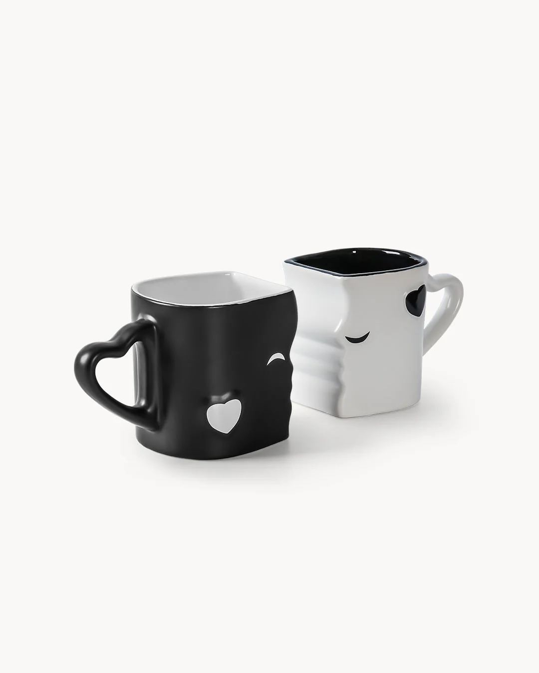 Die küssenden Tassen verbinden ein verspieltes Design mit langlebiger Qualität. Die zwei Tassen ergänzen sich perfekt: Zusammen entstehen zwei Gesichter, die sich beim Aneinanderstellen „küssen“ – ein liebevolles Detail für romantische Genussmomente zu zweit. Jede Tasse fasst 300 ml und ist aus robuster, hochwertiger Keramik gefertigt. Die Lieferung erfolgt in einer schönen Geschenkverpackung mit Herzfenster – ideal zum Verschenken und sicher im Transport.