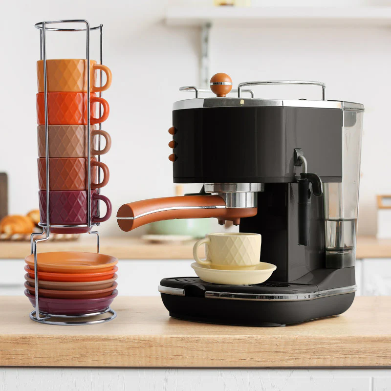 Die Palmanova Espressotassen aus hochwertiger Keramik überzeugen mit ihrer Facettenstruktur im modernen Look. Jede Tasse fasst 75 ml – ideal für einen aromatischen Espresso oder Ristretto. Das Set besteht aus 6 Tassen mit jeweils 75 ml Volumen und ist in 6 verschiedenen Farbtönen erhältlich. Zudem gehören zum Set 6 Premium-Untertassen sowie ein platzsparender Ständer zur ordentlichen Aufbewahrung. Die Tassen sind sowohl mikrowellengeeignet als auch spülmaschinenfest.